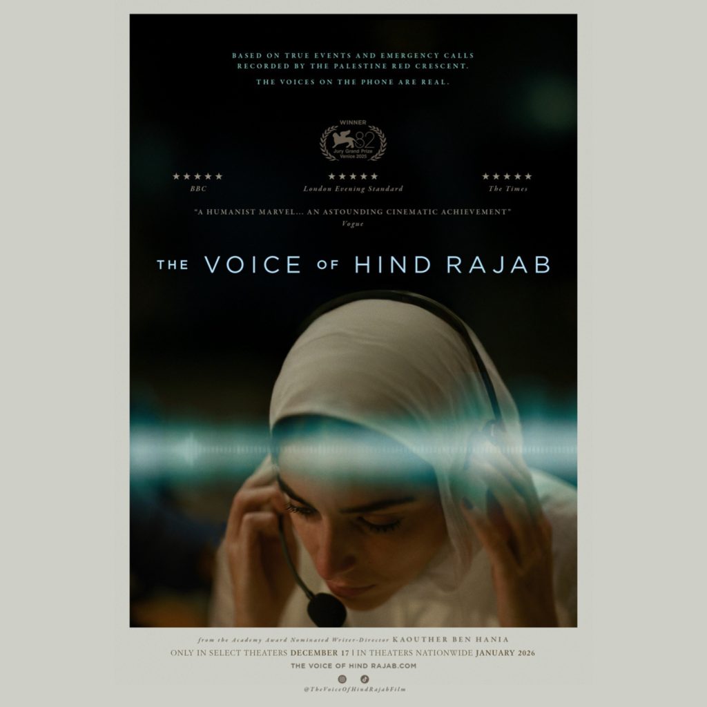 Directed by Academy Award–nominated filmmaker Kaouther Ben Hania, The Voice of Hind Rajab bears witness to the killing of six-year-old Palestinian girl Hind Rajab, who was trapped in a car under Israeli military fire in Gaza on January 29, 2024. Through the use of real emergency call recordings and carefully constructed re-enactments based on first-hand testimony and transcripts, the film reconstructs the hours during which Hind remained alive, alone, and pleading for help as Red Crescent dispatchers desperately tried to reach her.